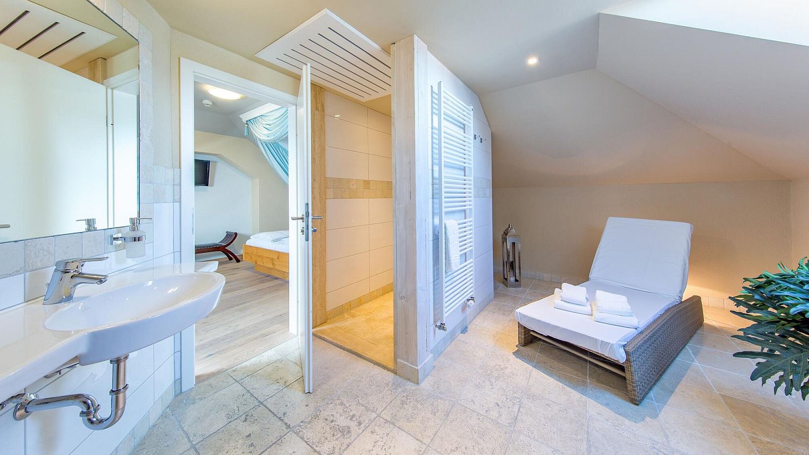 Our lovingly decorated wedding room, "The Golden Suite," will send newlyweds or newlyweds straight to seventh heaven. The suites are spread over two floors and feature a sauna and whirlpool for that special wellness experience. Harmony and comfort are combined here.